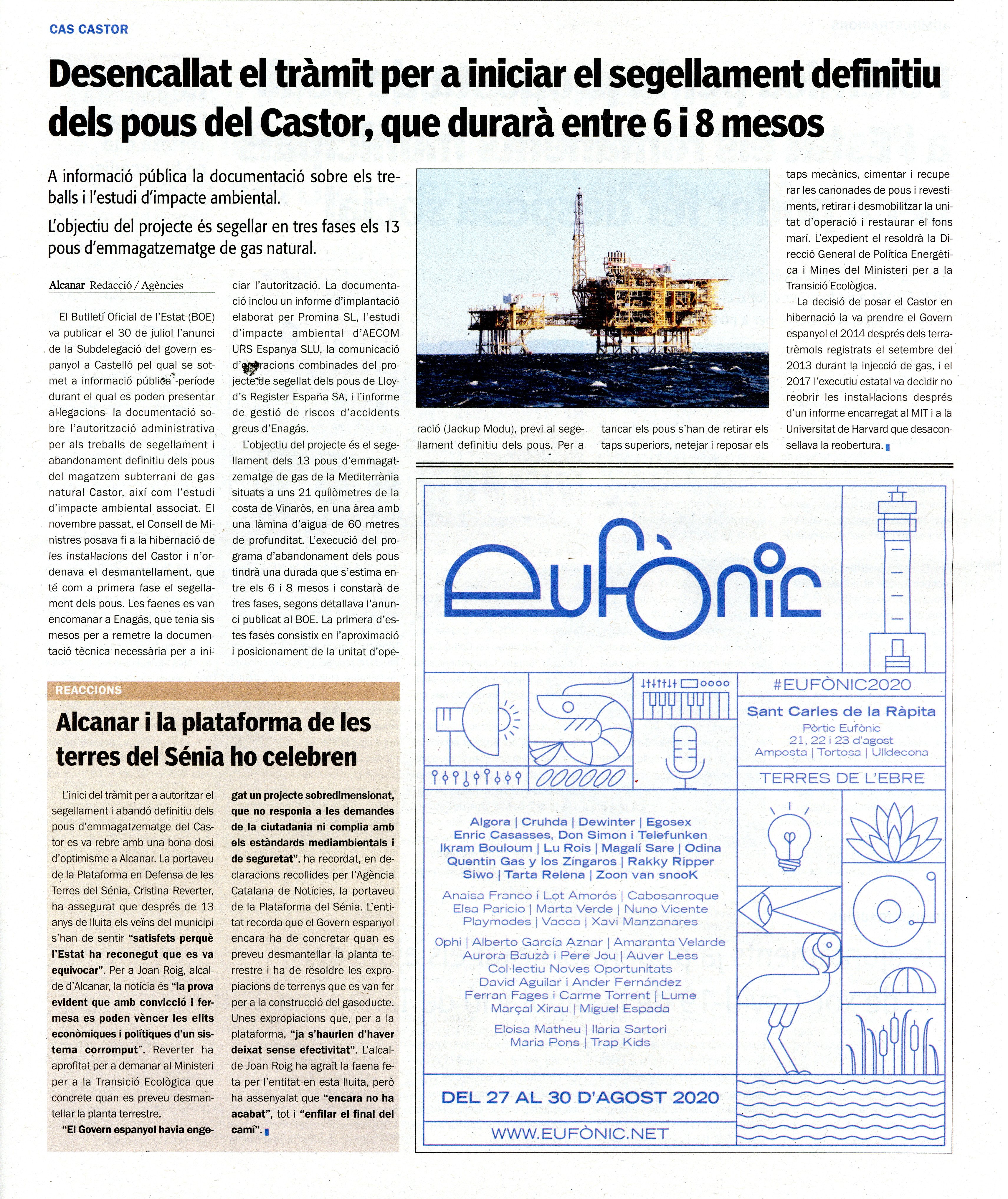 JPG   PDF Resum: A informació pública la documentació sobre els treballs i l'estudi d'impacte ambiental. L'objectiu és segellar en tres fases els 13 pous d'emmagatzematge de gas natural.